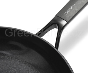 Tepelně odizolovaná rukojeť. Pevně přichycená rukojeť bez nýtů je tepelně odizolovaná, nepřehřívá se ani během vaření. Je vyrobená z termoplastu, takže ji můžtete používat i v troubě až do 180 °C. Má dokonalou ergonomii pro snadnou a bezpečnou manipulaci i s plnou pánví. Praktické očko na zavěšení pánve.